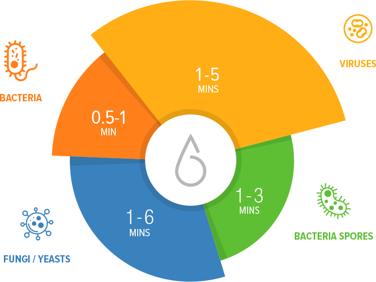 The timeline below is an estimation of the time taken for Germisep disinfectant cleaning products to destroy its foes